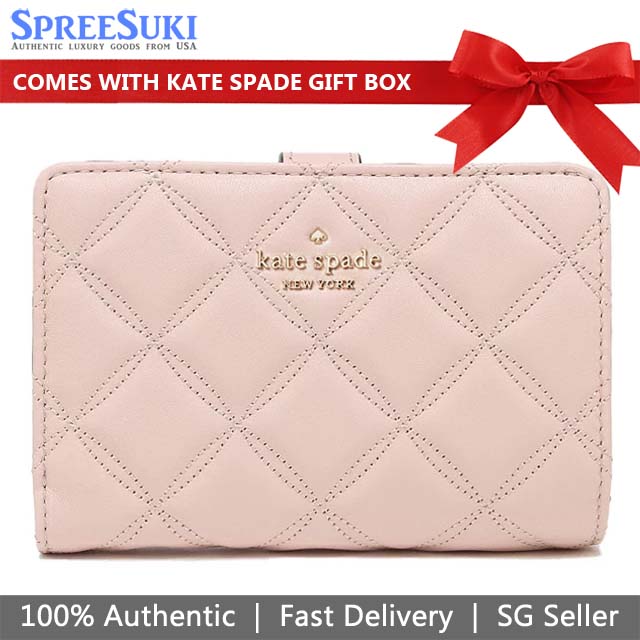 Kate Spade Wallet In Gift Box Medium Natalia Medium Compact Bifold Wallet Rose Smoke Pink # WLRU6344