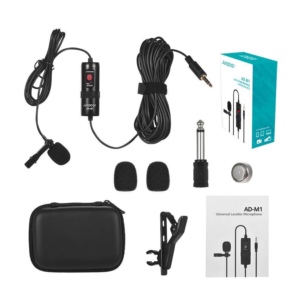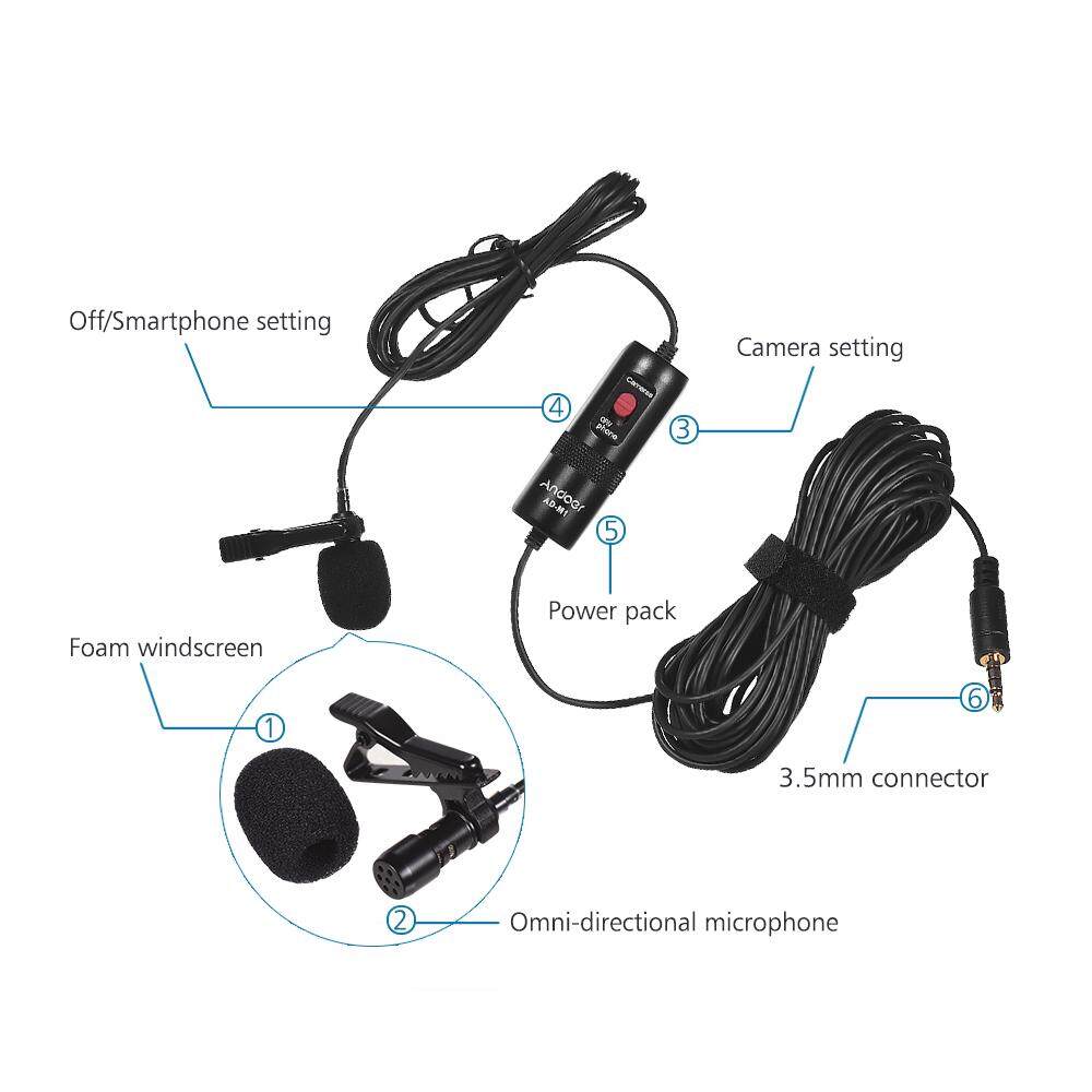 Andoer AD-M1 Omni-directional Condenser Microphone Lavalier Microphone with Foam Windscreen for i-Phone Hua-wei Xiao-mi Smartphone for DSLR Camera Camcorder Audio Recorder