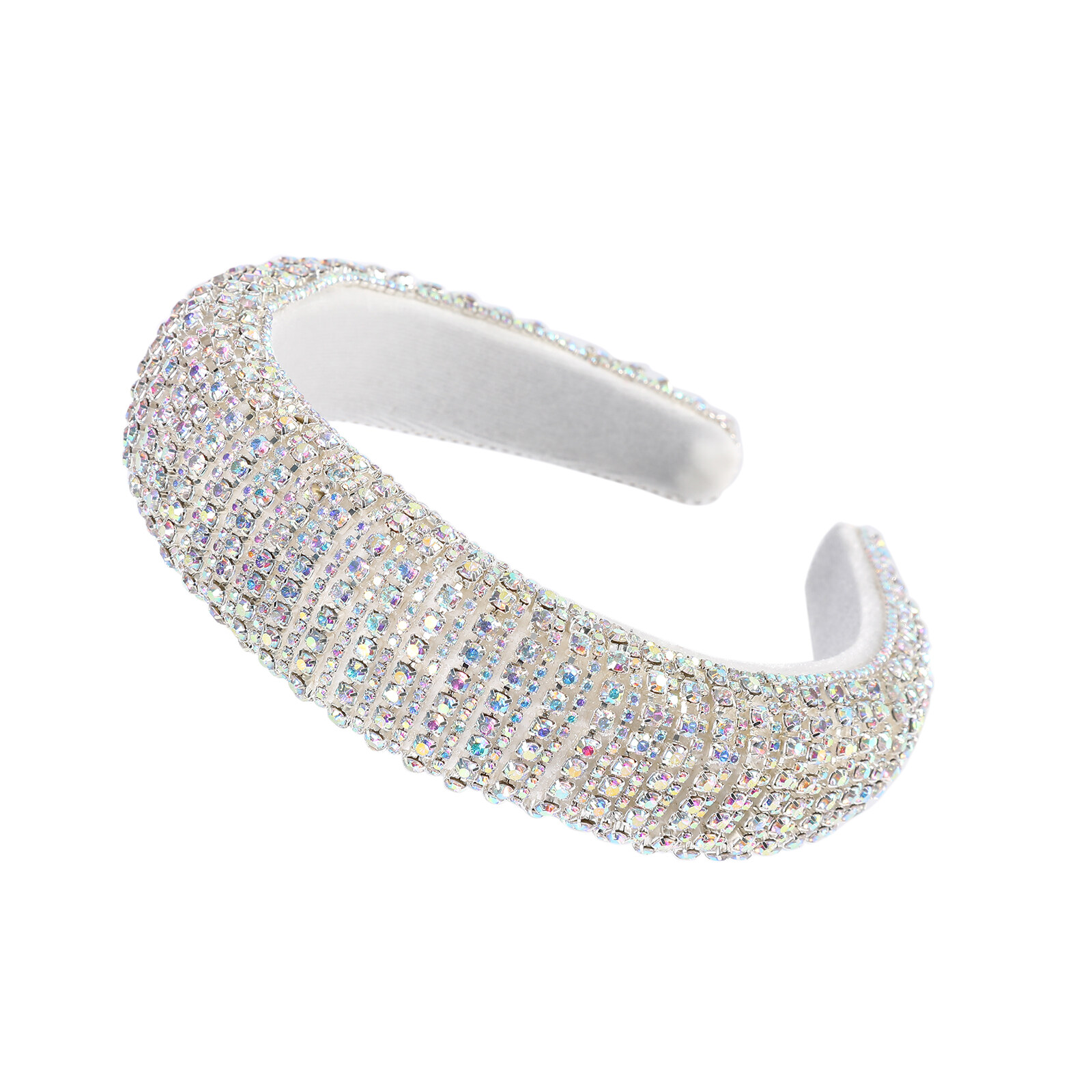 Woman Luxury Full Diamond Beads Crystal Hair Band Retro Rhinestone Padded Sponge Wide Headband Crown
