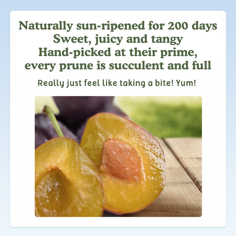 Introducing this delicious double act: Prunes & Apples.We blind taste-tested prunes from five farms in three countries before selecting our richer, darker and more decadent prunes from the Serbian Kapaonik mountains.We blend them with crisp, fresh-tasting apples to balance the flavour and complement the caramel flavour of the prunes.This recipe is the perfect introduction to fruit flavours and a great source of fibre to help get things moving.
