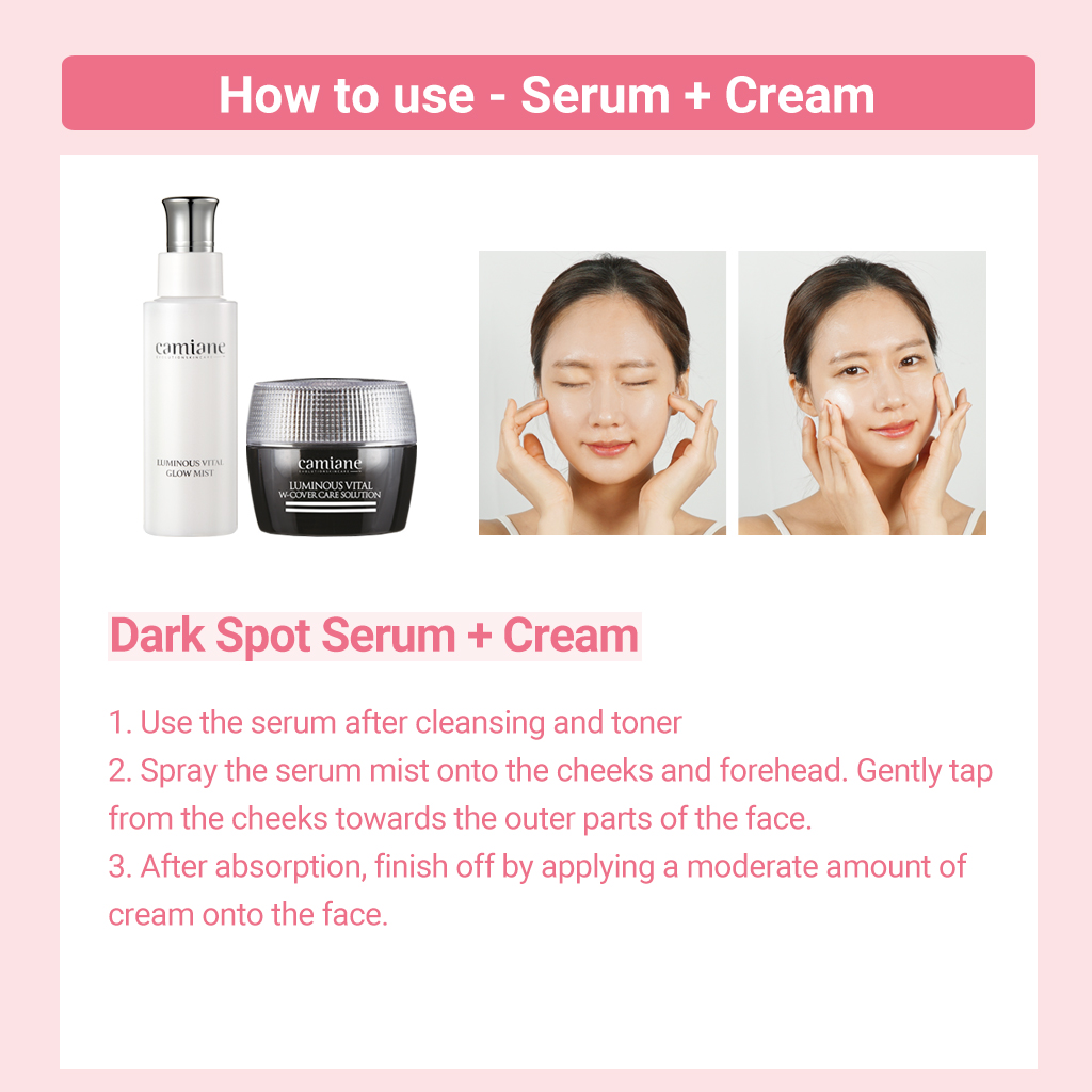 [Camiane] Dark Spot Glow Mist Serum (100ml) | Luminous Vital Dark Spot Cream (50ml) | Dark Spot Set (Serum+Cream)