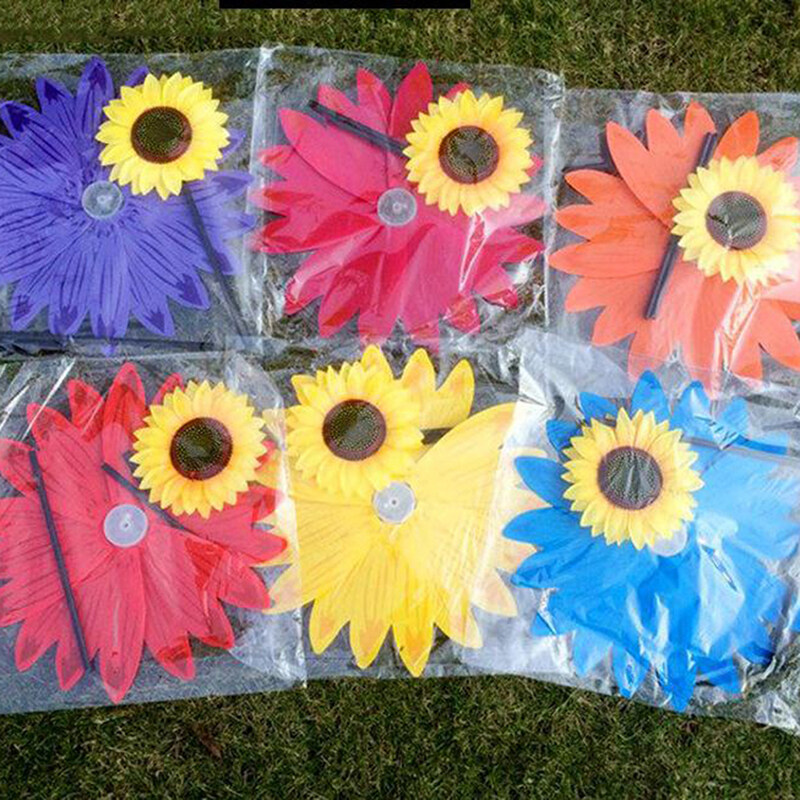 Double Layer Sunflower Windmill Wind Spinner Kids Toys Yard Garden Decoration