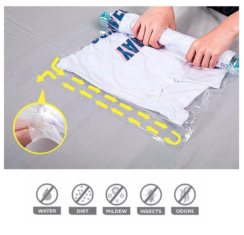 [SG Seller] 8 PCS Hand Roll Seal Bag Vacuum Storage Clothes Just Roll it by Hand Easily without vacuum - Stock in SG