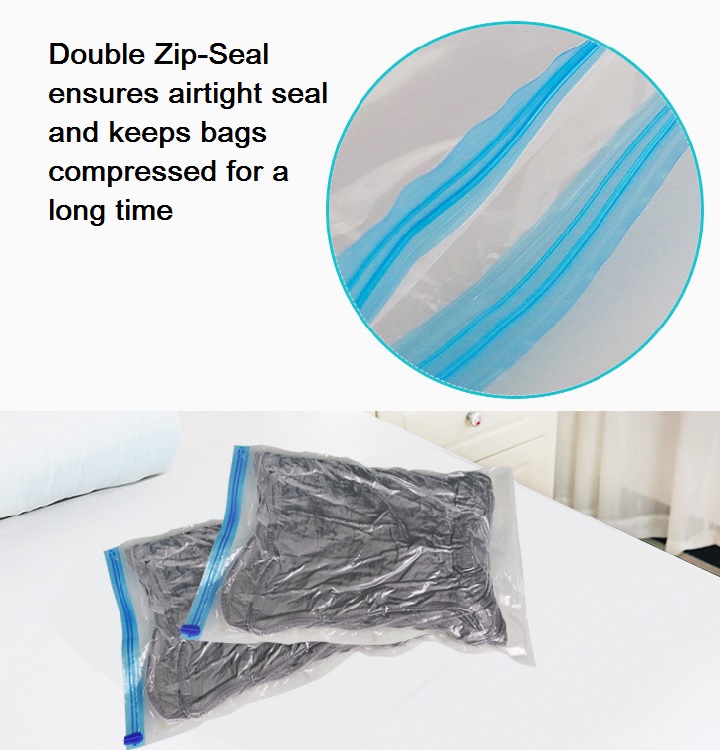 Save Space: Saves over 75% of space in your suitcase. Double Zip-Seal ensures airtight seal and keeps bags compressed for a long time.