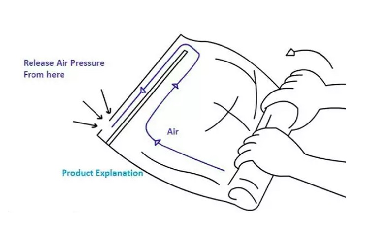 4. Roll the vacuum bag together with your item with the sealing zip being the rolling axis to push air out through the one-way valves at the bottom of the bag