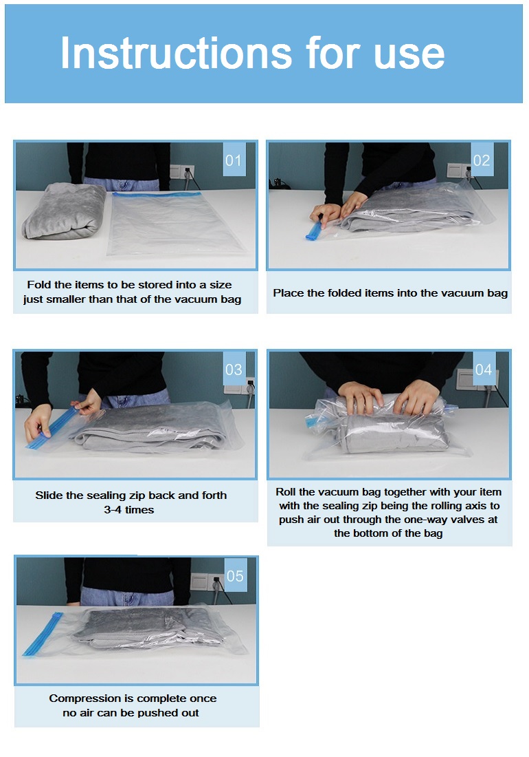 Ease of use when Travelling: All you need is to zip the roll up bag and roll in order to push air out through the valves at the bottom of the bag.