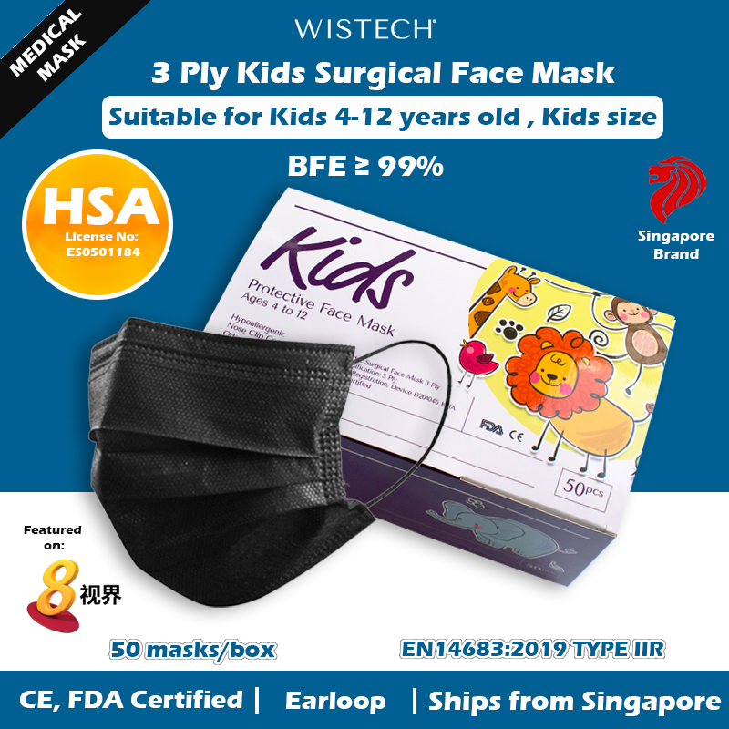 [OFFICIAL STORE] GET ADDITIONAL % OFF (Pink/others) Wistech 3 Ply Kids Surgical Mask, Protective Mask, Kids mask, Kids size, 4 to 12 years old, 50 pieces, HSA Notified Medical Device, FDA CE Approved,