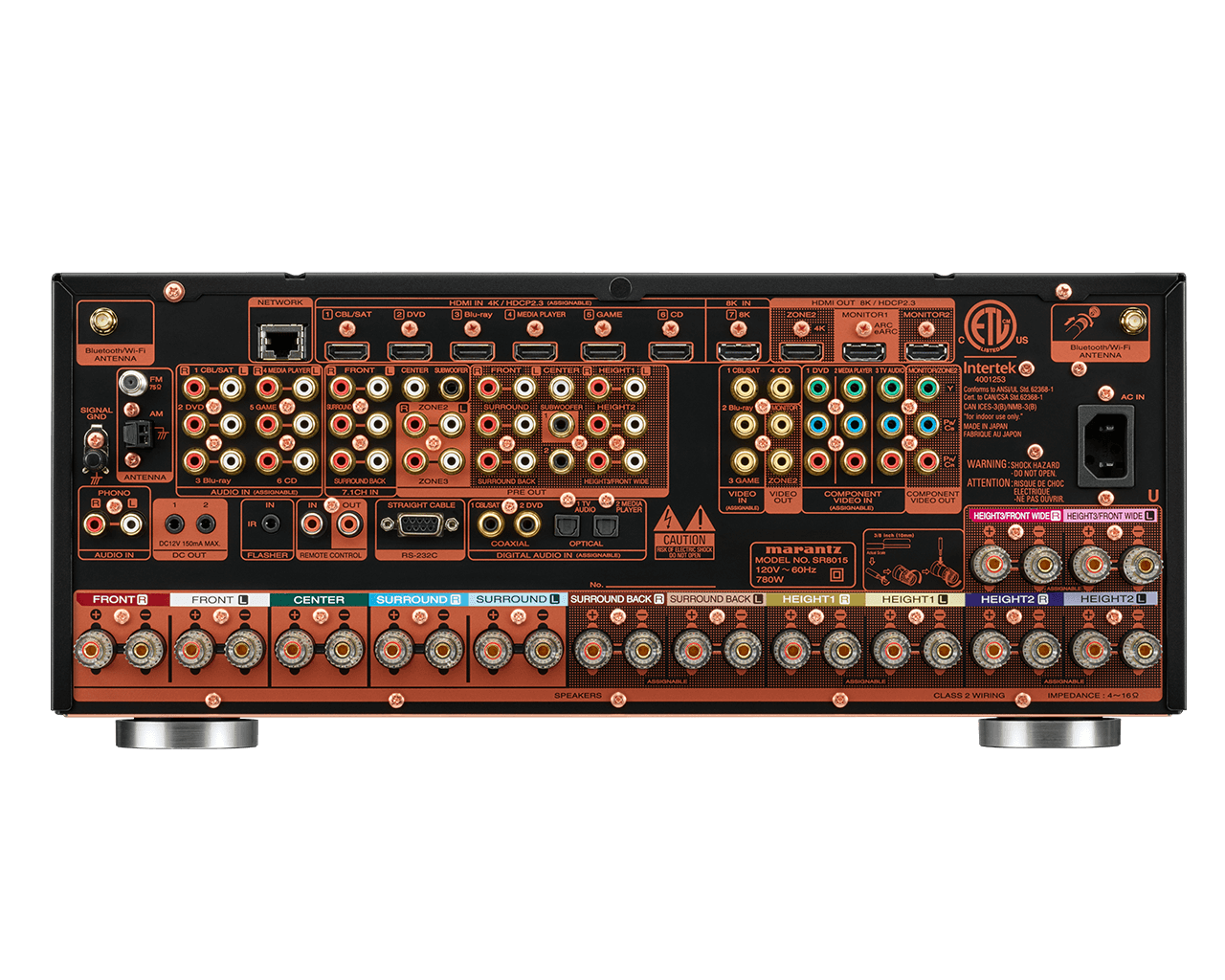 HDMI 2.1 audio/video switching: 8 in (includes 1 front-panel input), 3 out