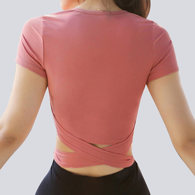 Women Short Sleeve Running Shirts Sexy Exposed Navel Yoga T-shirts Solid Sports Shirts Quick Dry Fitness Gym Crop Tops Sport Wear