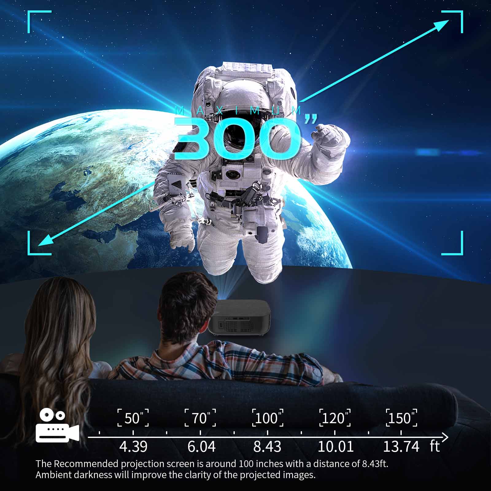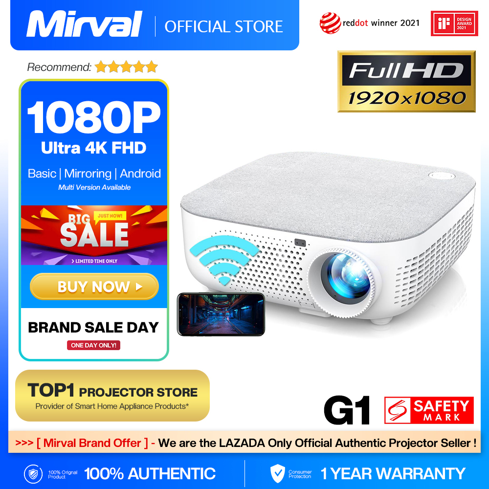 【Native 1080P Android System】Mirval G1 WiFi Mirroring LED 1080P Portable Projector 4K Home Theater 7500 Lumens LCD Video Proyector Classroom Office Projectors