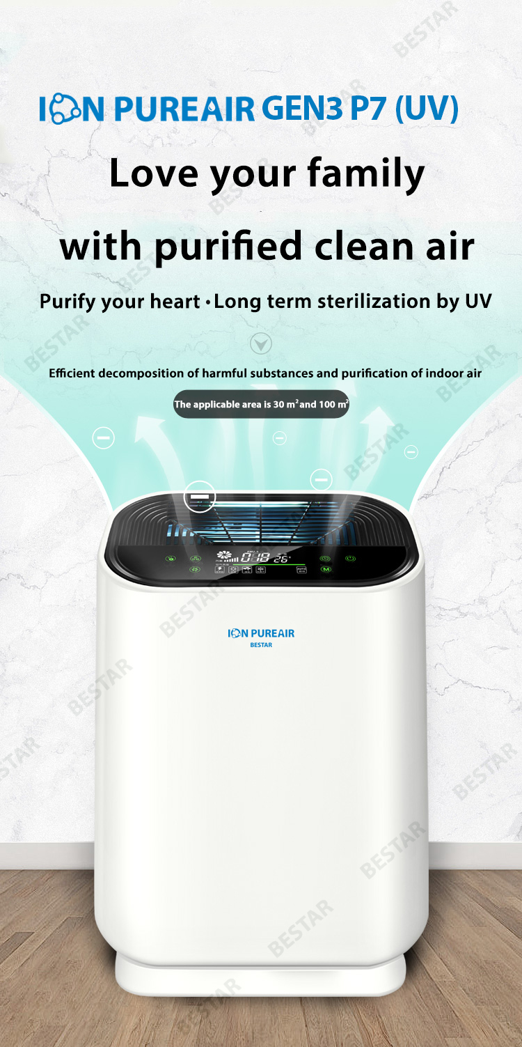 [SG SELLER]Air Purifier ION PUREAIR GEN3 P7(UV) True UV Light Sterilizer/ LCD Display/Hepa Filter/Negative Ion/Compact/Quieter/Powerful(1+1 Free H13 Hepa Filter)