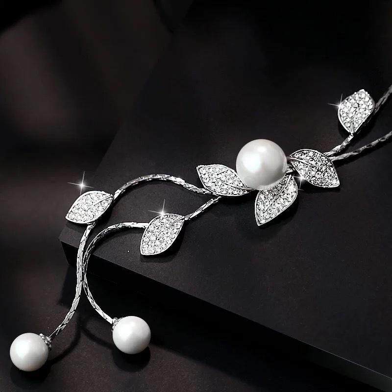 Pick Me Up Women Leaf Pearl Sweater Chain Female Wild Korean Personality Atmosphere Lady Necklace Long Necklace Pendant Clothes Accessory