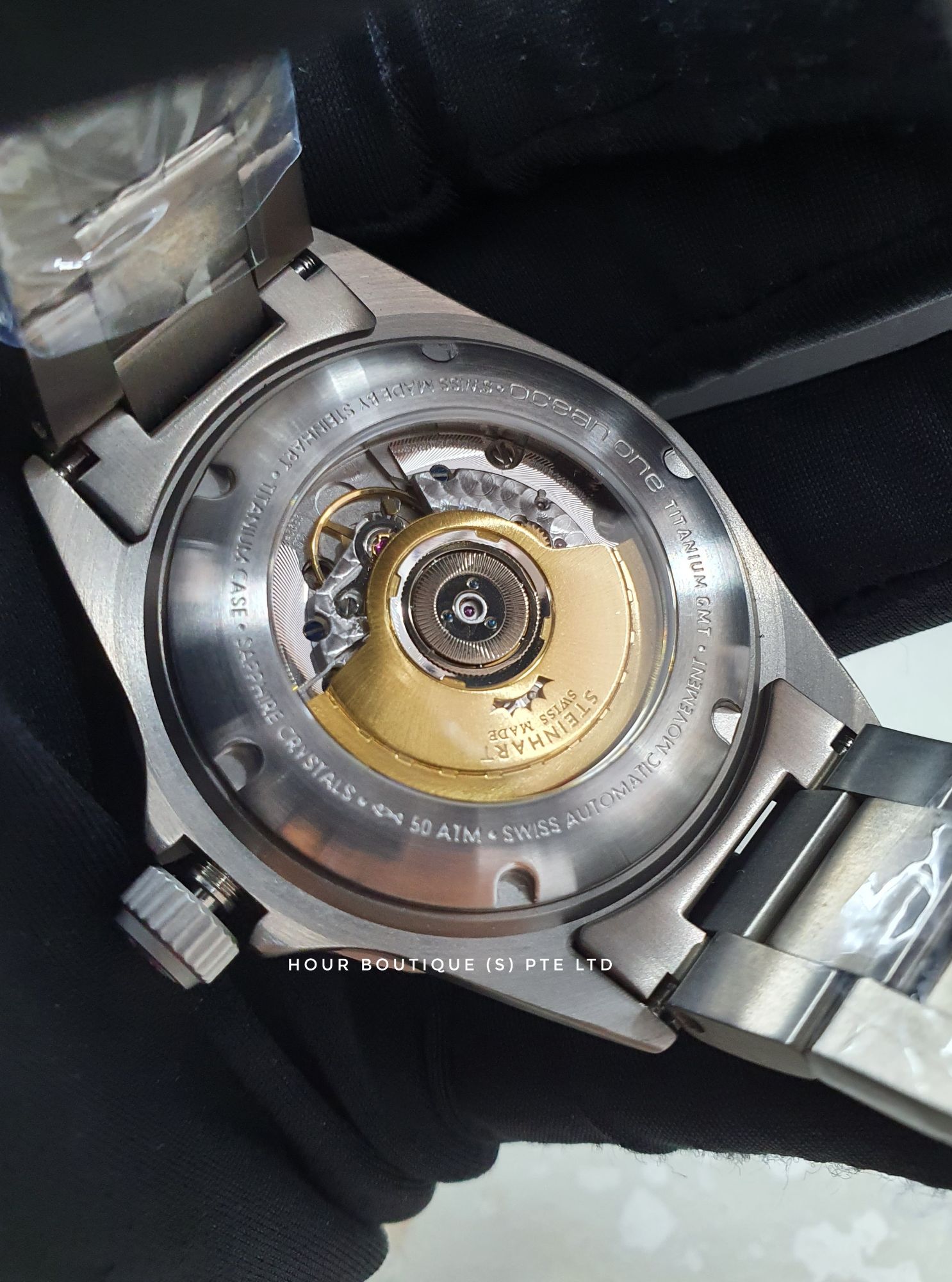 Swiss Made Steinhart Ocean 1 Titanium Black Blue Ceramic Bezel GMT Men's Automatic Divers Watch