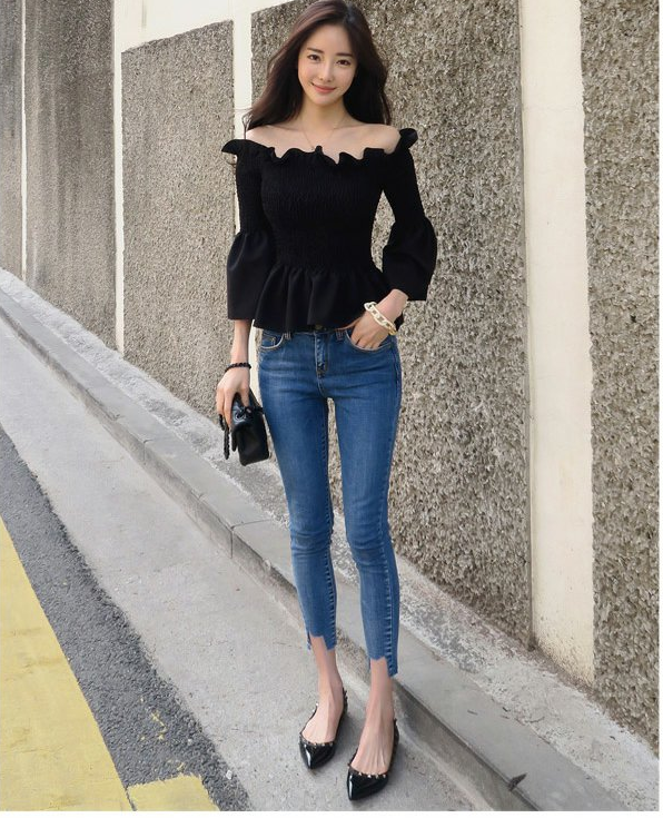 EDQRDQ Womens Smocked Off The Shoulder Tops Summer Flared Bell Sleeve Chiffon Blouses T-Shirt