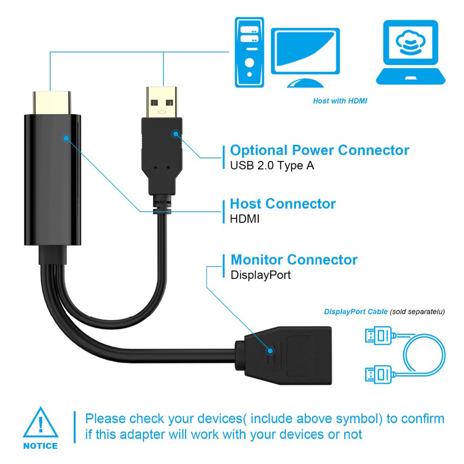 This cable allows you to connect your HDMI output device to the Display Port display.