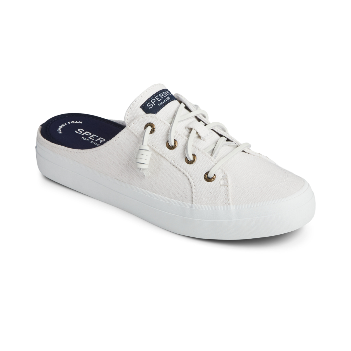 The classic Crest Vibe in a mule styleLightweight and breathable canvas uppers in classic core colors with genuine rawhide laces and barrel ties for easy on/off and a secure fitMemory foam insole provides all-day comfort, and a flexible non-marking rubber outsole with original razor-cut Wave-Siping™ provides ultimate traction