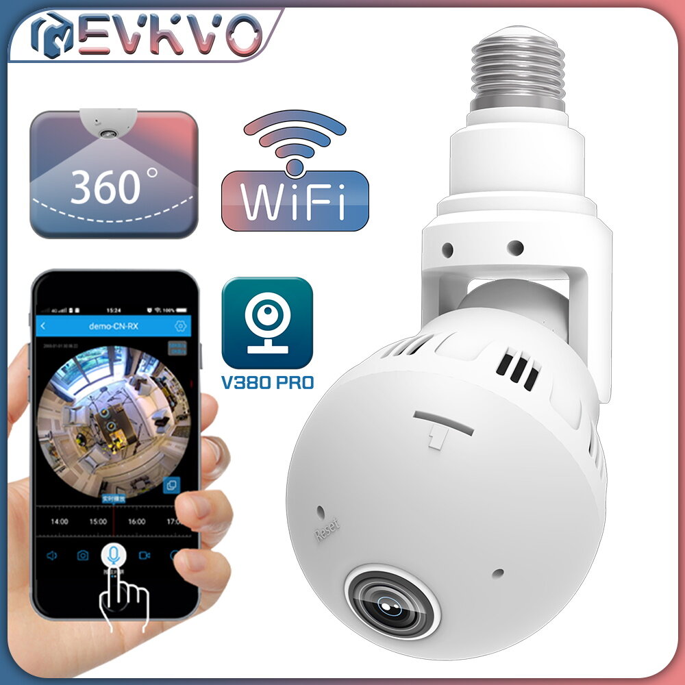 EVKVO LED & IR Night Vison IP Camera Bulb Lamp light Wireless 4MP 360 Degrees Panoramic Light Home CCTV Security Video Surveillance Wifi Mini Camera Multicolor
