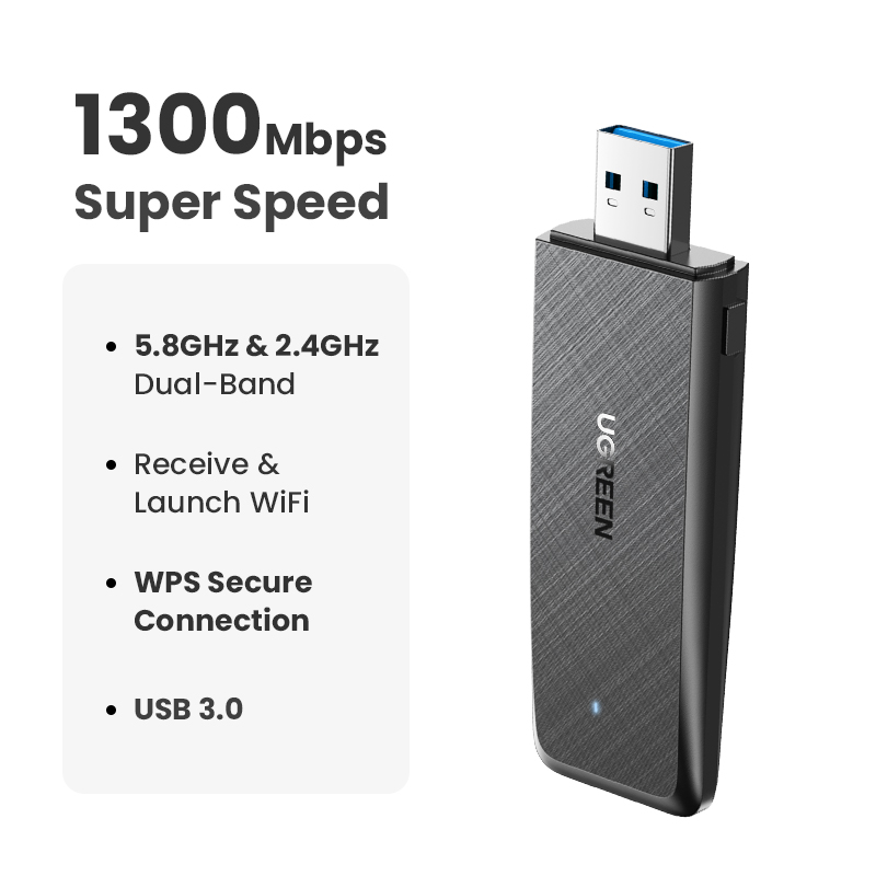 UGREEN 2.4G & 5G Wifi Wireless Adapter 1300Mbps 650Mbps USB WiFi Netowrk Card for PC Computer USB WiFi Adapter USB Ethernet WiFi