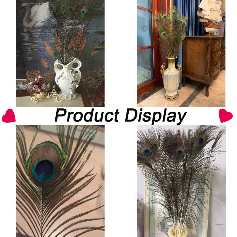 Peacock feathers come from legal farms, natural feathers. All feathers are sterilized by high temperature. Under different lighting conditions, the feathers have different colors, and the feathers that are photographed under sufficient light look better.