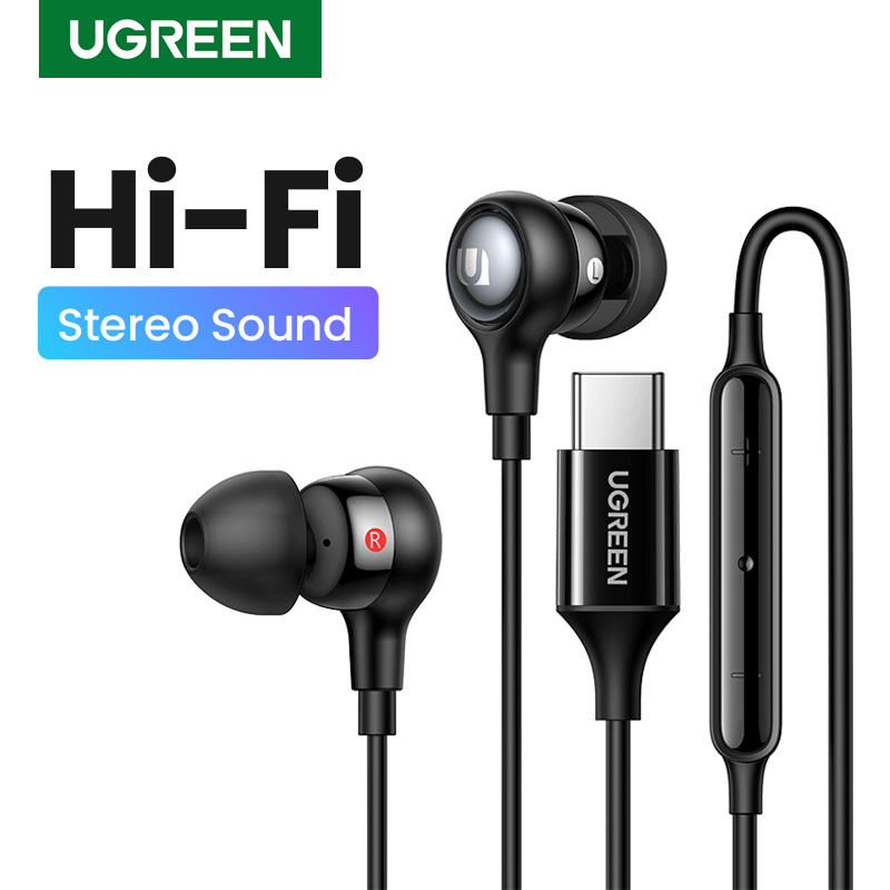 UGREEN Stereo Bass Headphone In-Ear 3.5mm Earphone Type C Lightning Wired Earphones Metal HiFi Stereo Sound Earpiece with MIC for Xiaomi Samsung Huawei iPhone