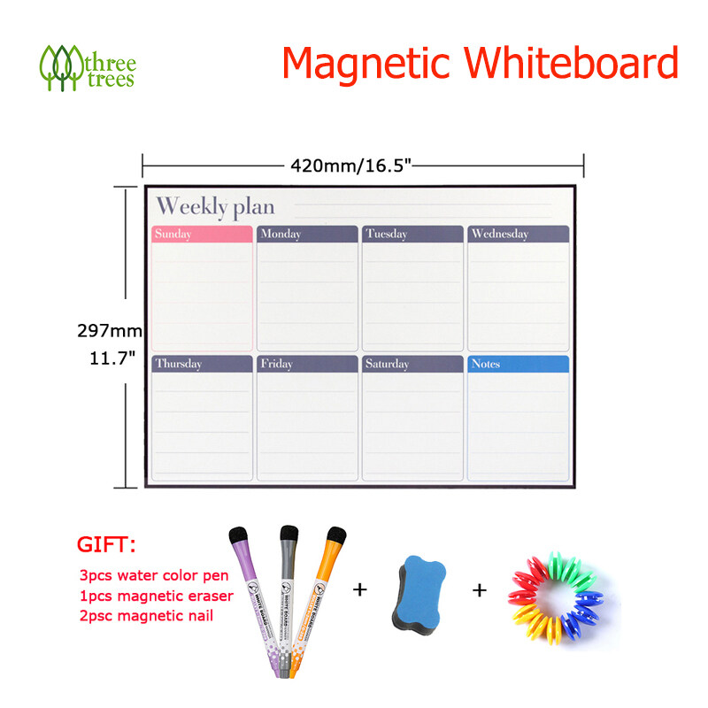 threetrees A3 Size Magnetic Weekly Monthly Planner Calendar Dry Erase Whiteboard Family Home Office Note Board Message Drawing Fridge Magnet Sticker Board