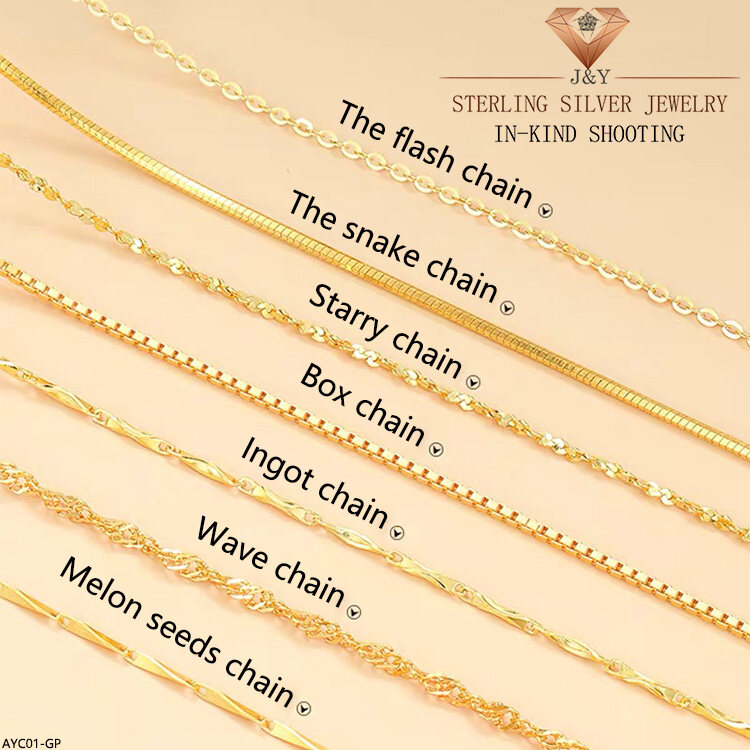 ✨J&Y SILVER✨【In Stock】100% Sterling Silver S925 Necklace Chain Different Design/Length Gold plated Jewelry Gift 09