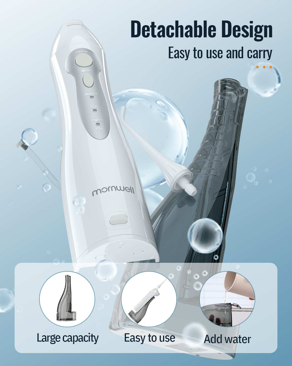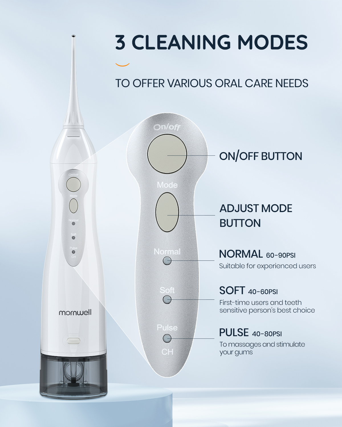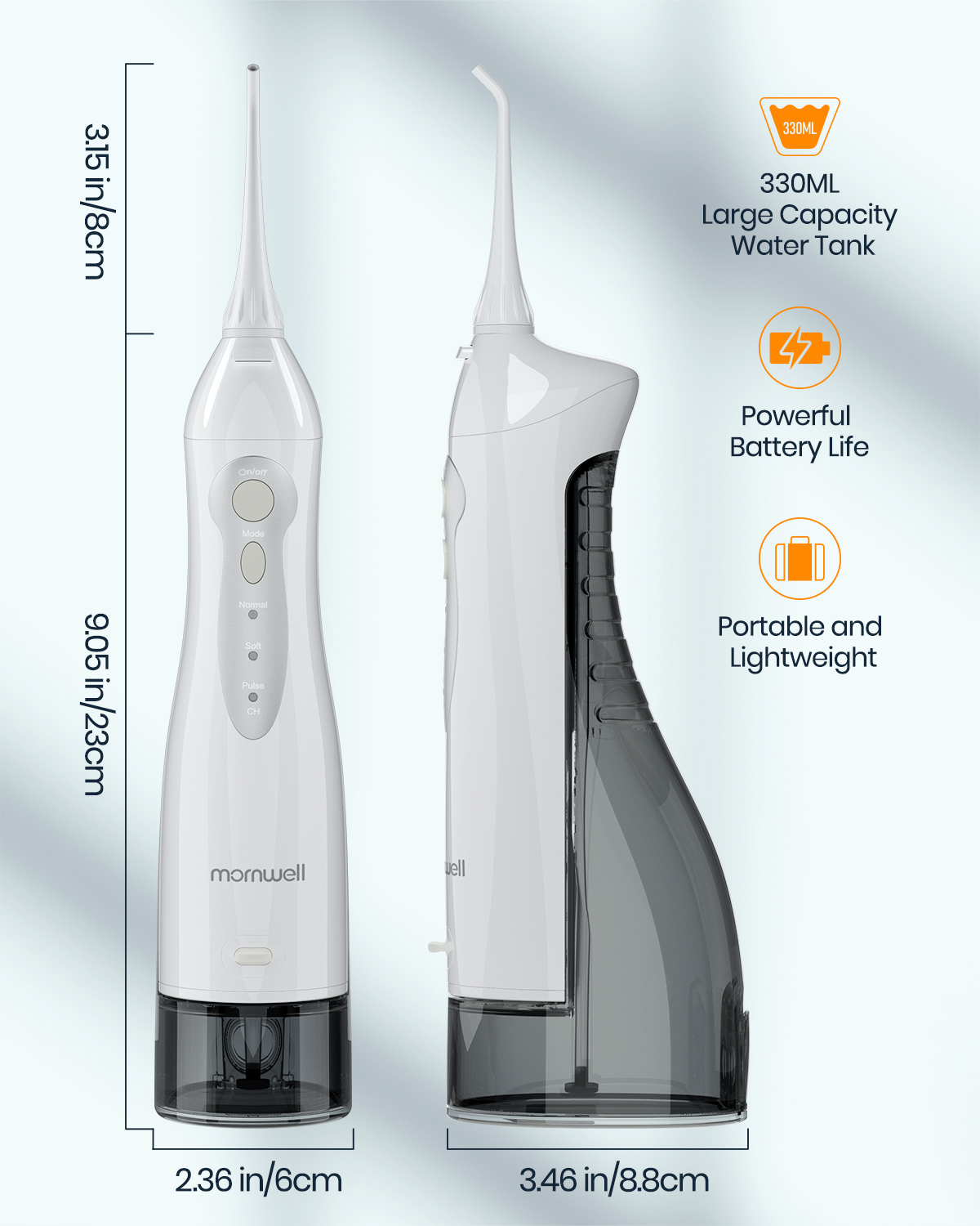 【100% Quality & After-sales Guarantee】Mornwell Cordless Water Flosser is Certificated by CE/FCC. If dental flosser with any quality problems, please contact us firstly, We offer replacement guarantee within 3 months.