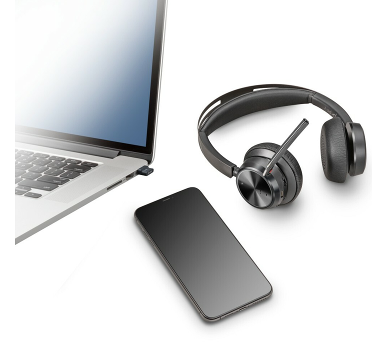 - Voyager Focus 2 UC: PC via included BT700 Bluetooth adapter or via USB cable; smartphone via Bluetooth