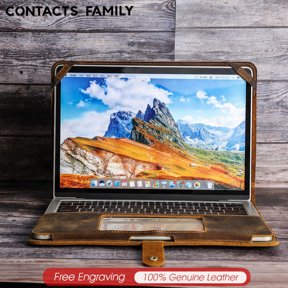 CONTACTS FAMILY Sleeve Laptop Case Bag Cover For Apple Macbook Pro Air 13.3 15.4 Inch Genuine Leather Protective Notebook Cover Bag