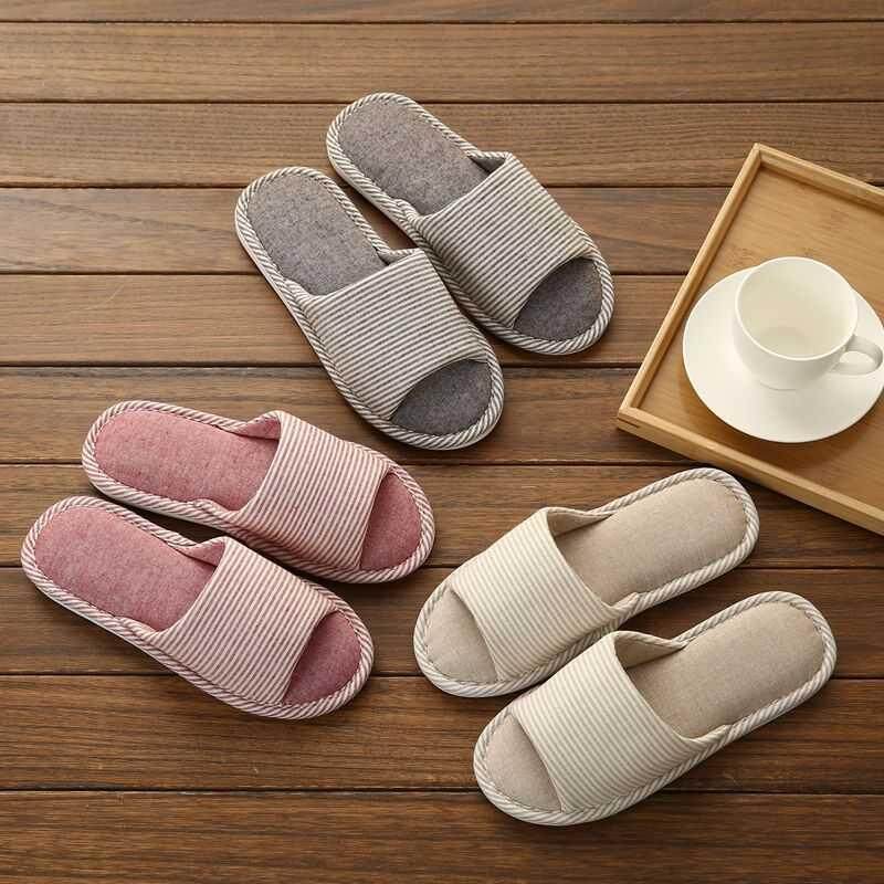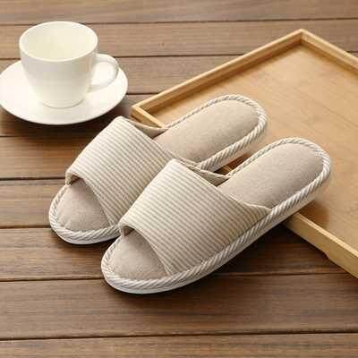 2021 ▶IN STOCK Muji slippers good product home anti-skid men and women couples summer spring and autumn wooden floor summer indoor linen cotton slippers