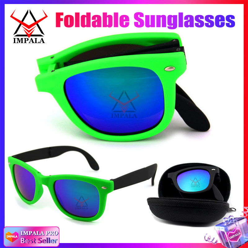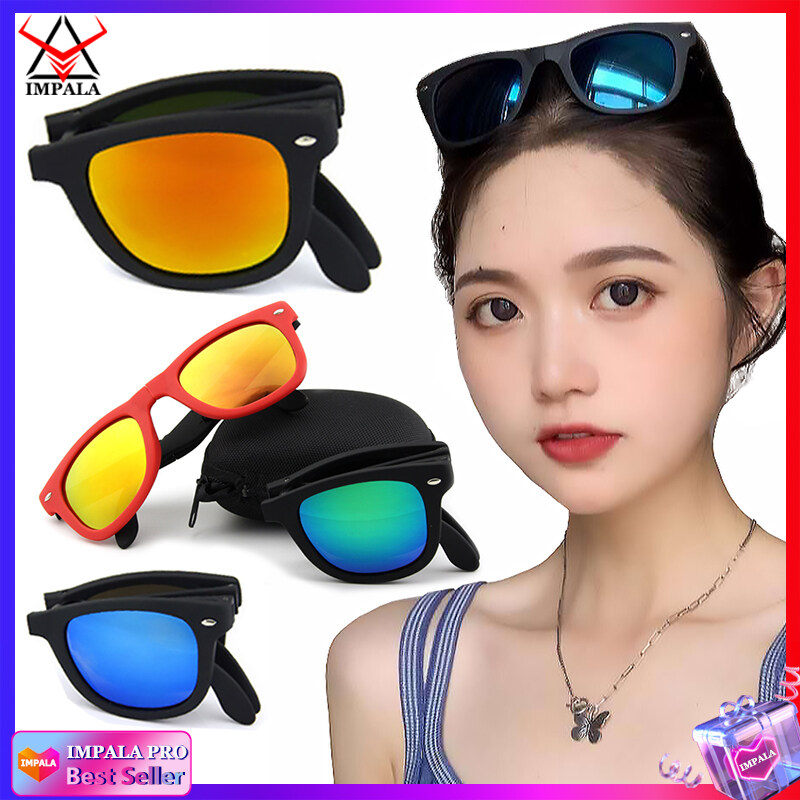 IMPALA QT116X Fashion Foldable Sunglasses for Men and Women Anti Glare Outdoor Sports Sun glasses Portable Glasses UV Protection Lens with Mini Eyewear Case