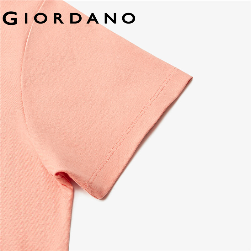 GIORDANO Women T-Shirts Fashion Printed Smile Face Cotton T-Shirts Summer Short Sleeves Ribbed Crewneck Basic T-Shirts 13391010
