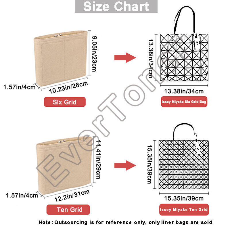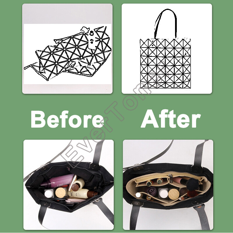 EverToner Felt Insert Bag Fits for Issey Miyake Six Ten Grid Organizer Makeup Handbag Organizer Travel Inner Purse Portable Cosmetic Bags
