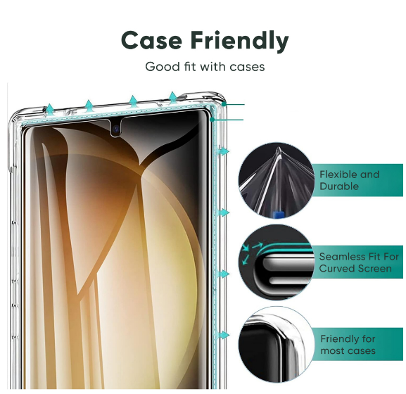 ✔️Phone case-friendly and covers phone edges (for phones with curved edge)