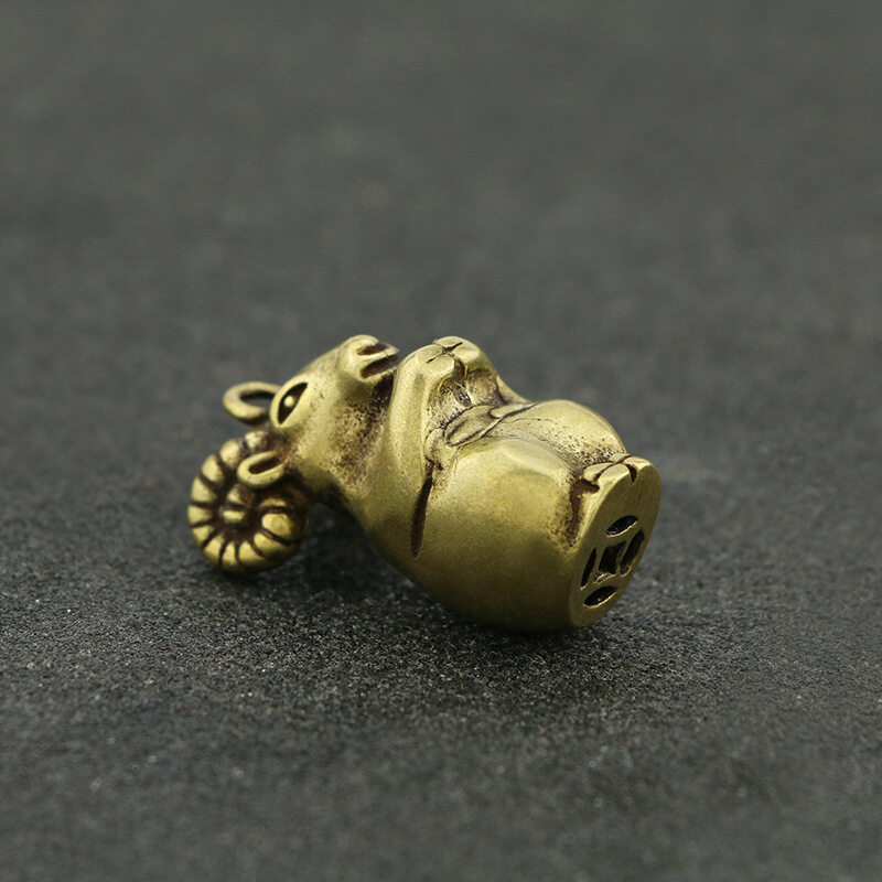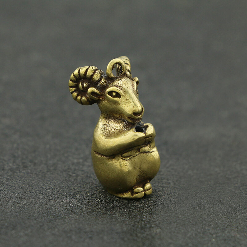 Zodiac Sheep Brass Tea Ornaments Bronze Incense Stick Micro Carving Antique Handles Car Keychain Home Decoration Accessories Desktop Decor Ornament Funny Gift