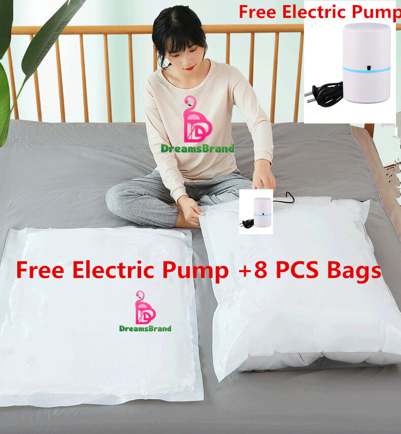[SG local Delivery ] Free Electric Pump + 8PCS Compression Storage Vacuum Bags 50x70CM Compression Storage Bag Wardrobe Organizers Plastic Bag (Transparent)
