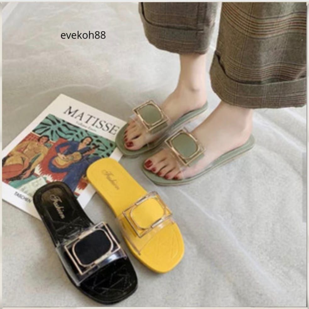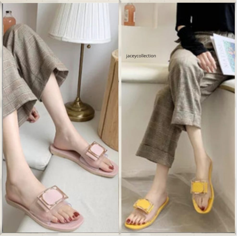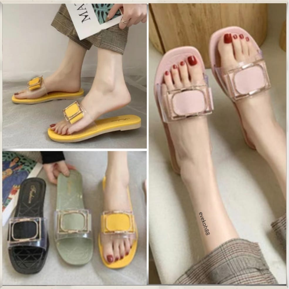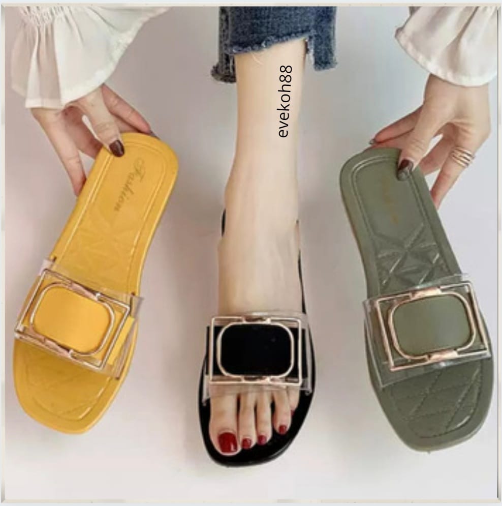 Woman Sandal Slides Square Buckle Summer Daily Fashion Transparent Latest design 2021