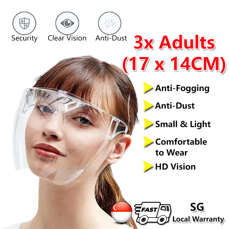 【SG Ready Stocks】Kids Adults Solid Full Face Protection Shield Mask Acrylic Transparent Anti Fog Face Shield