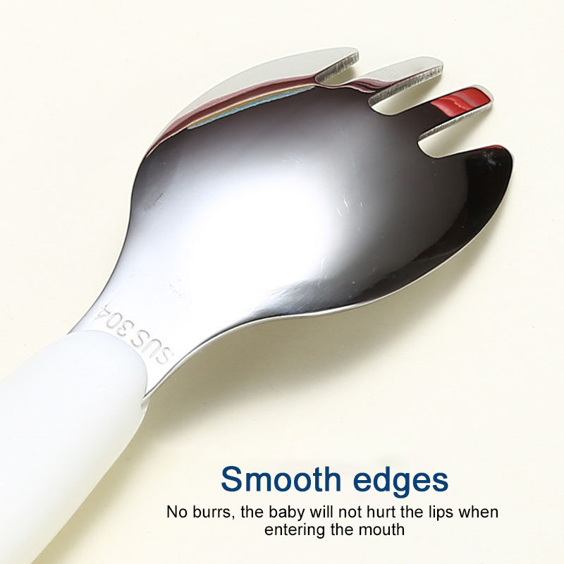 Mododo 2pcs/Set Spoon Forks Portable Children 1Box Kids Cutlery 304 Stainless Steel Tableware Baby Feeding Utensils Cartoon Pattern