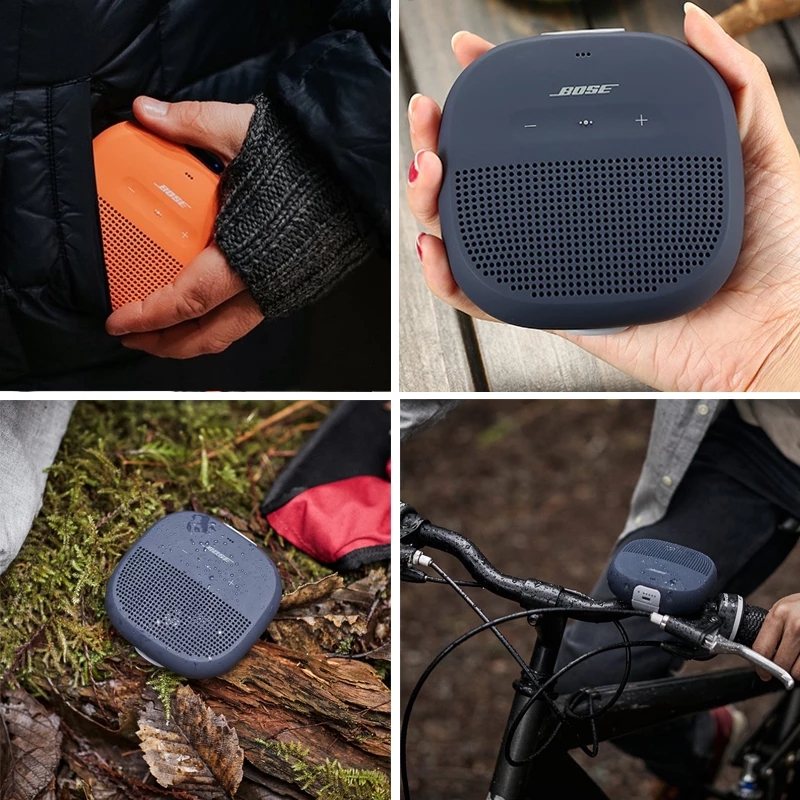 When a portable speaker is this small and powerful, you'll never leave it behind. So when adventure is calling, grab the SoundLink® Micro Bluetooth® speaker on your way out the door and make the best of every moment. This small speaker is at home in your hand. And it delivers crisp, balanced sound and unmatched bass for its size. Bose did it with a custom mounted transducer and passive radiators that produce sound that's loud and clear—even outside.