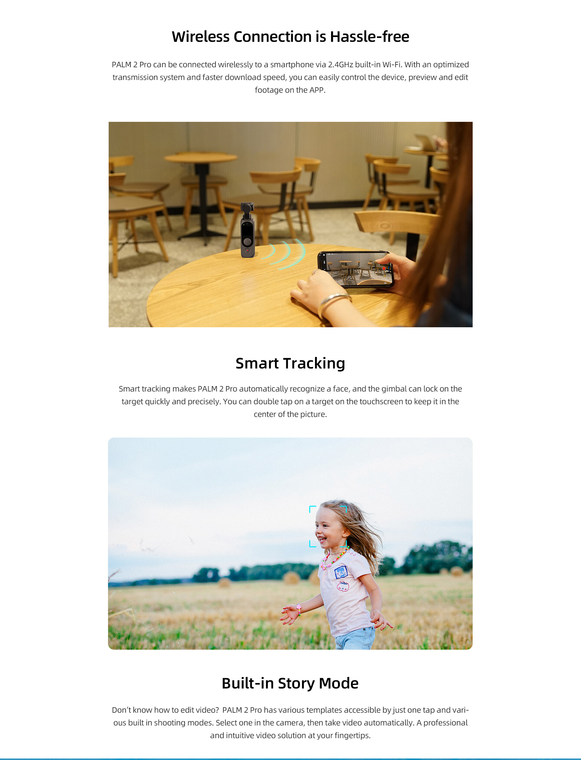 FIMI PALM 2 Pro 3-axis Handheld Gimbal 1/2 Inch Sensor 4K 30fps 160 Minute Mechanical stabilization FIMI Original Pocket