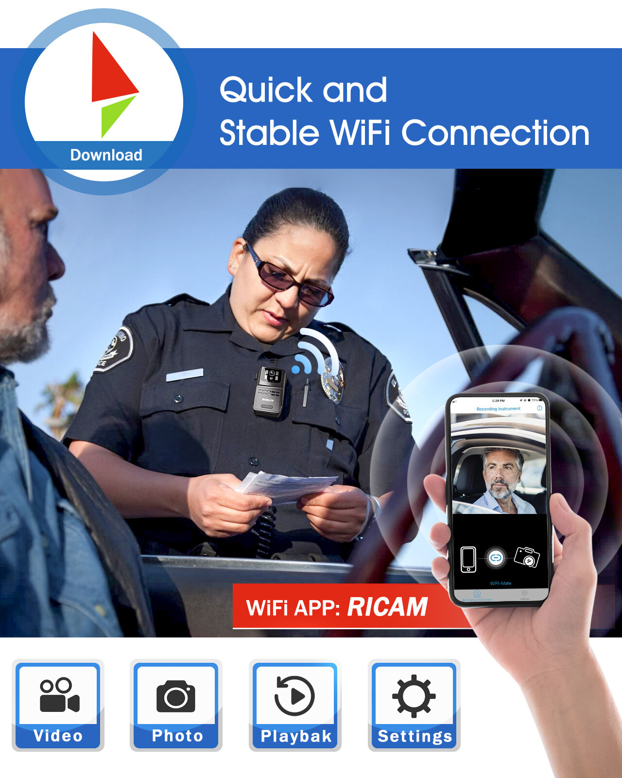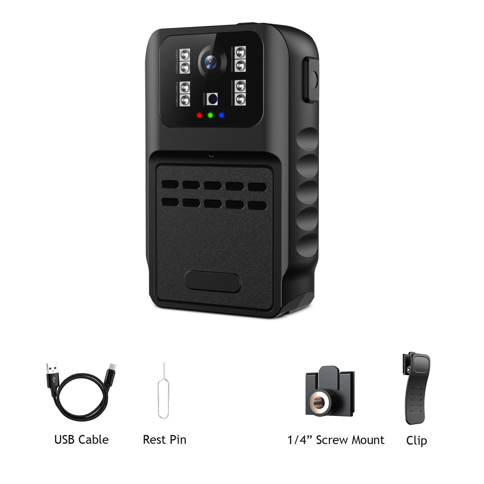 • Features 1080P/30fps, the mini body camera could connect to mobile phone app to playback/download/delete videos.