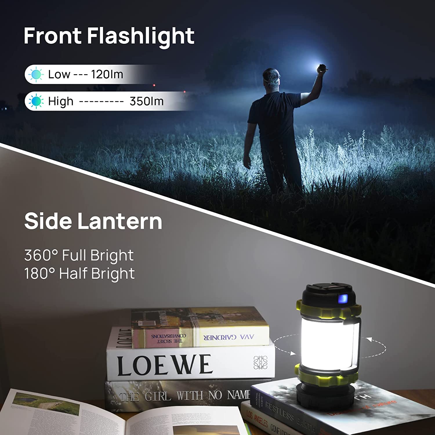 Rechargeable Camping Lantern Outdoor Emergency IP44 Waterproof LED Torch Light with Sidelight Multi-Functional Flashlight Searchlight with 6 Modes 3600mAh for Camping Hiking Christmas Gift [2 Years wa