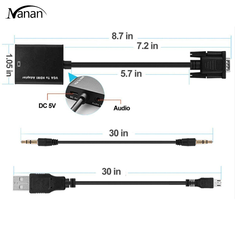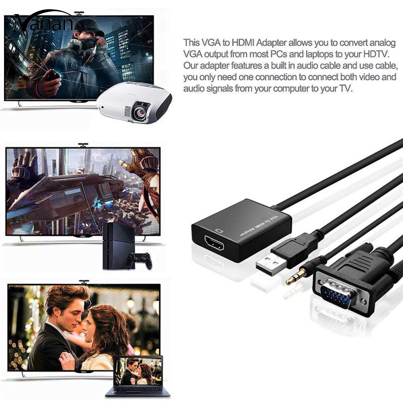 VGA to HDMI Adapter 1080P HD Audio TV AV HDTV Video Cable with Audio