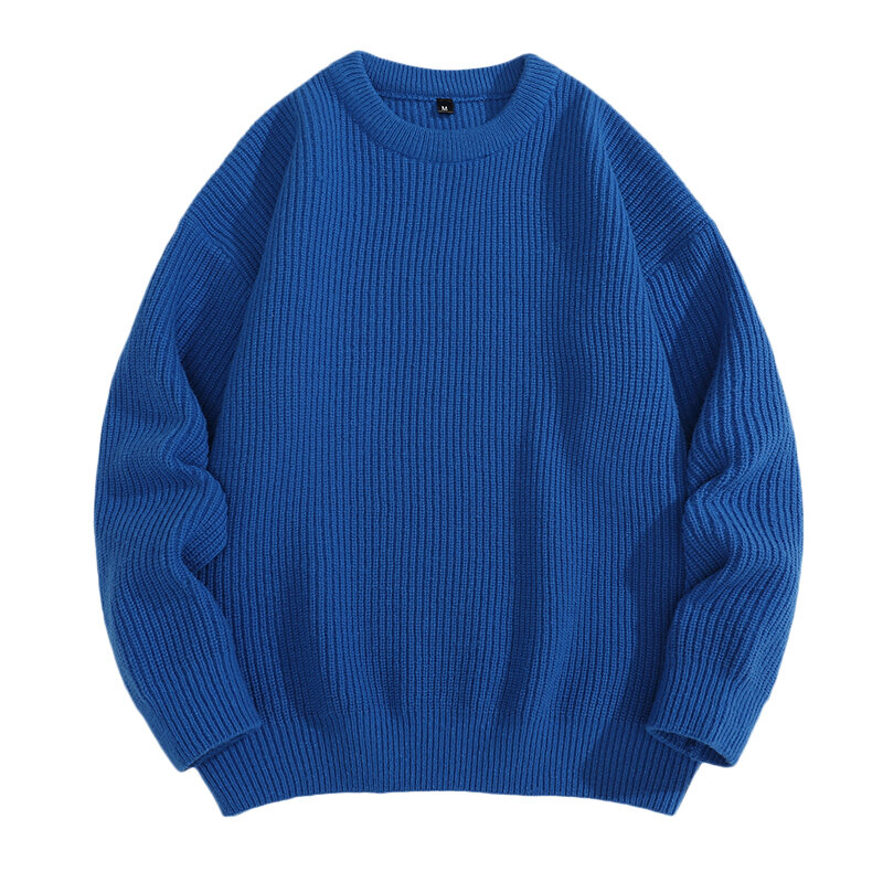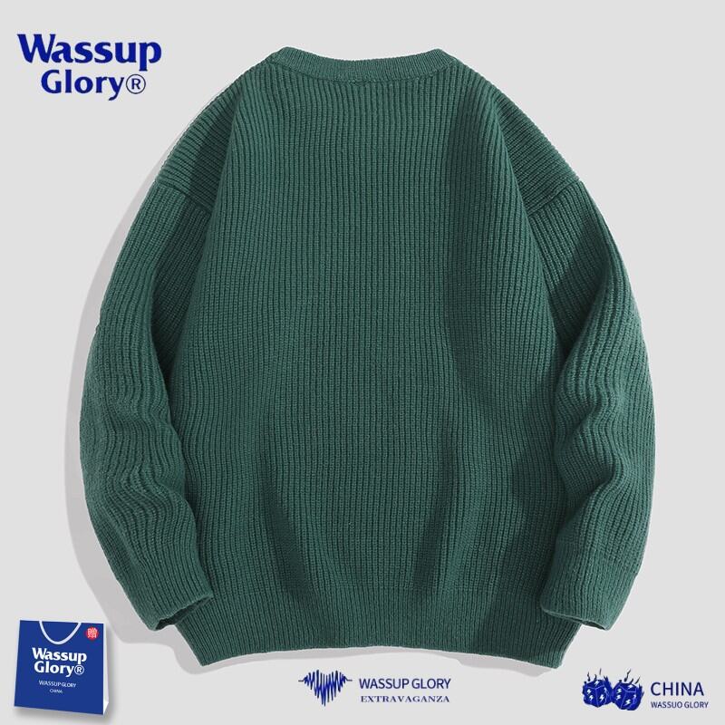 Wassup2022 Autumn and Winter Loose Solid Color round Neck Sweater Men's Simple Versitile Fashion Couple Sweater