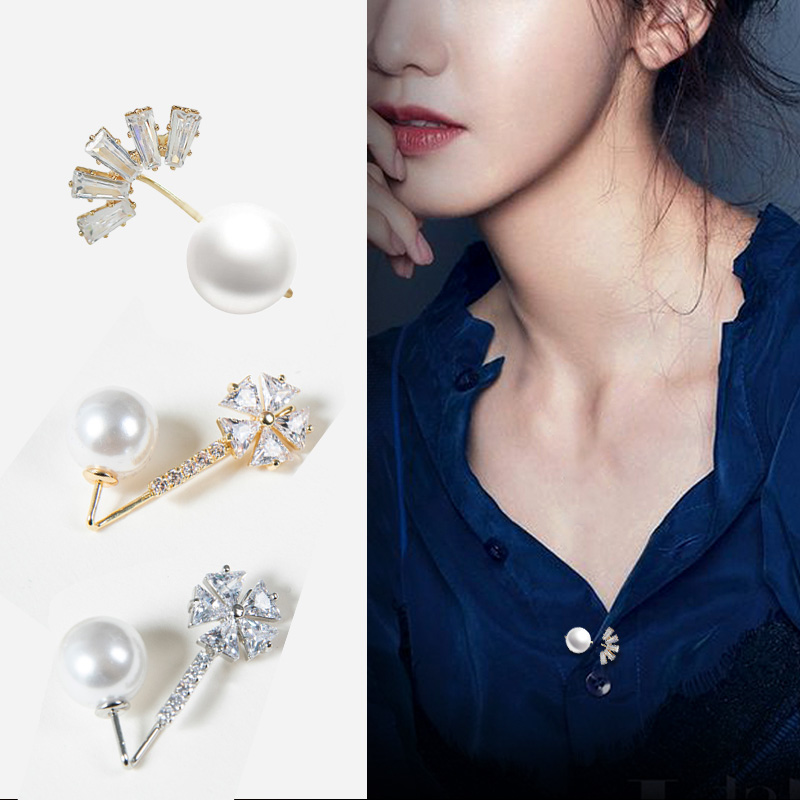 1Pcs Zircon Pearl Brooch Pins Anti-fade Exquisite Elegant Brooches for Women Sweater Coat Summer Dress Decoration
