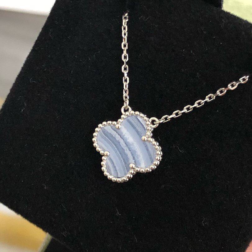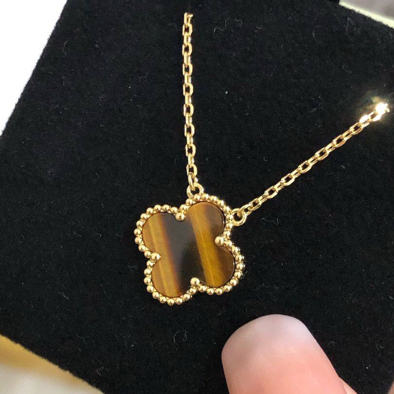 Four-leaf clover with diamond and Nature Stone Pendant Necklace All colors