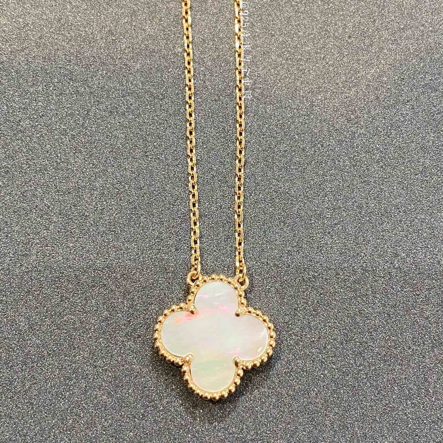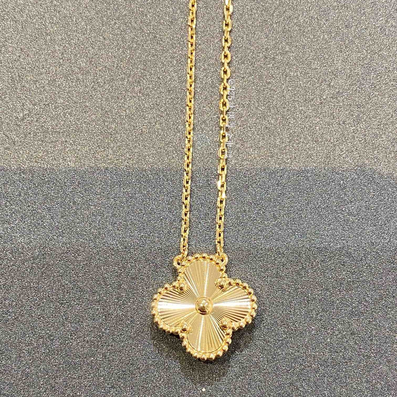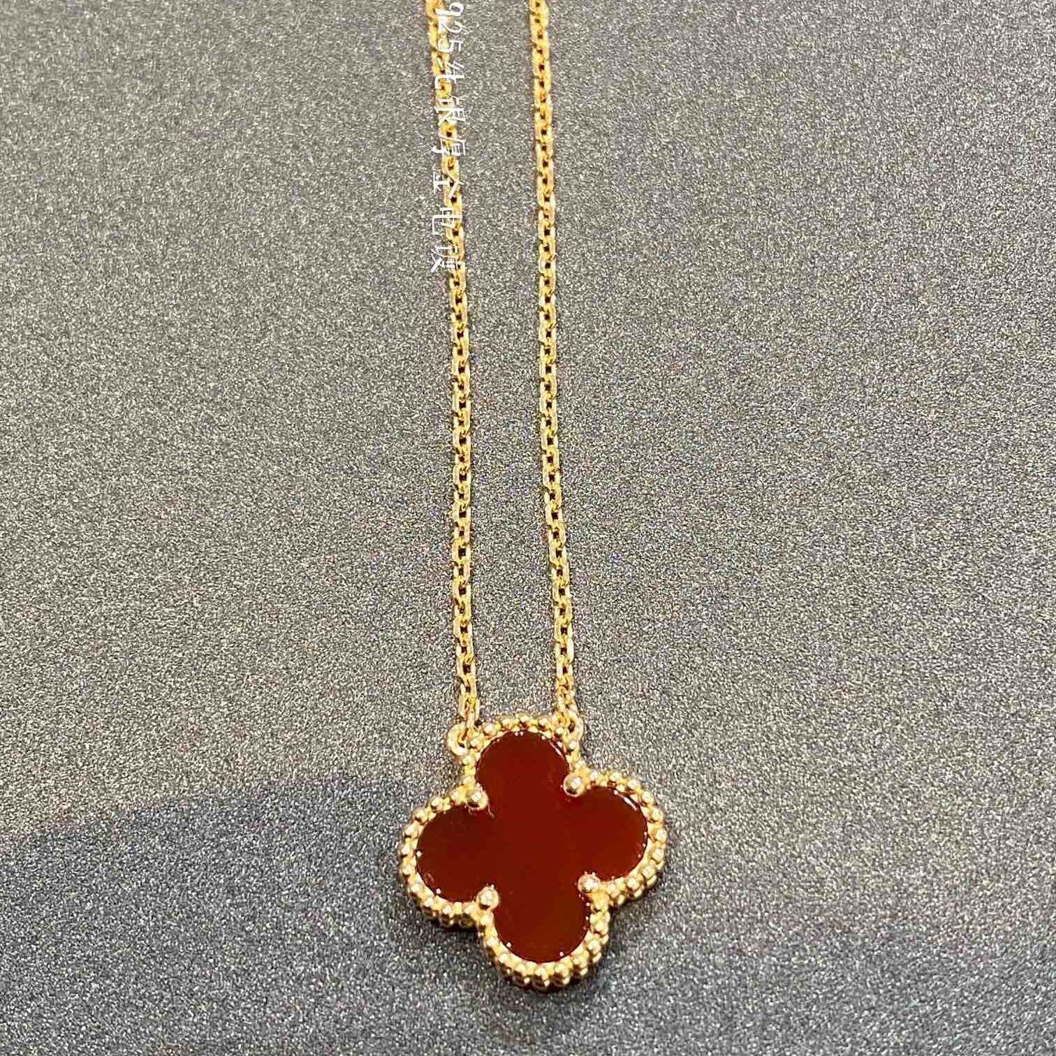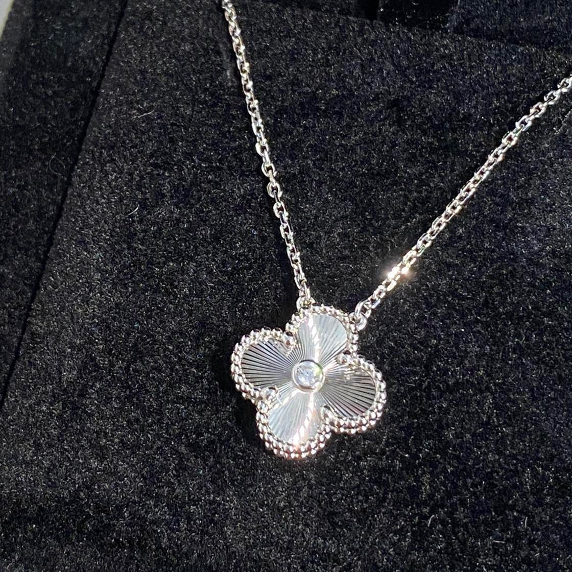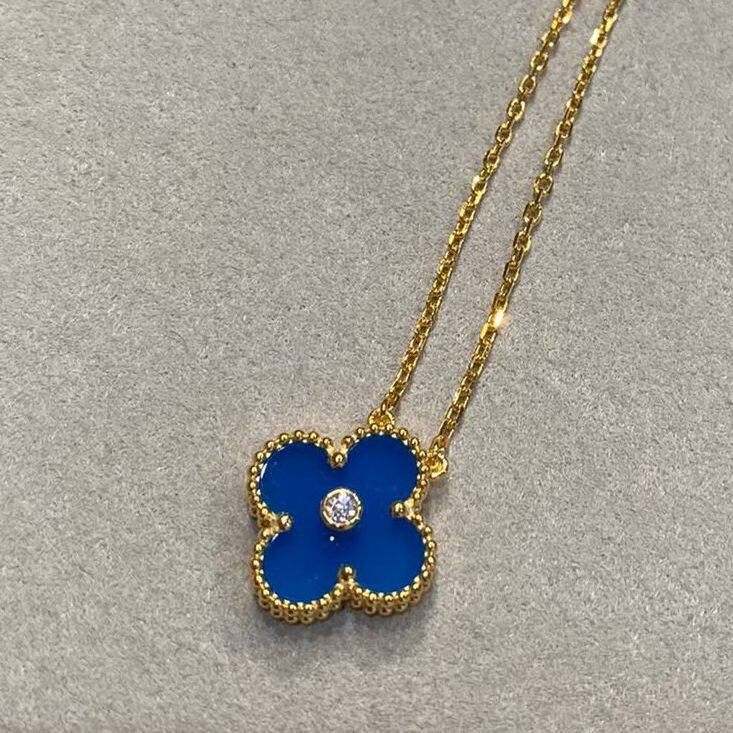 [Hot Sale] Four Leaf Clover Collection Vintage Flower Pendant Necklace With Single Shiny Round Diamond for Women Korean Clavicle Chain Pendant Necklace