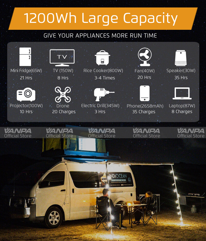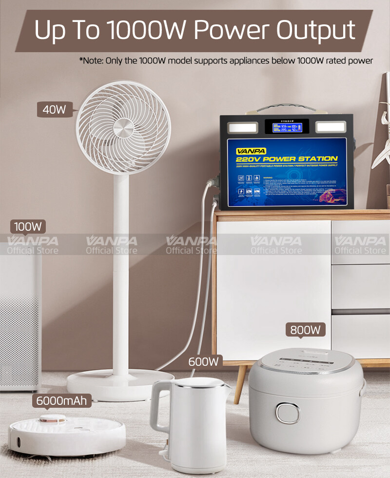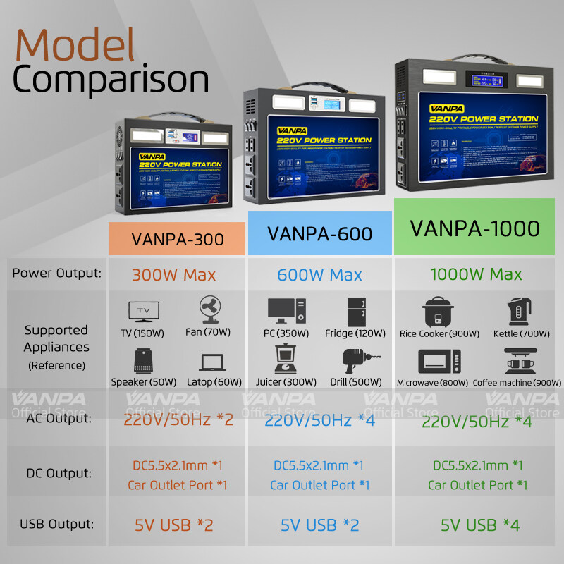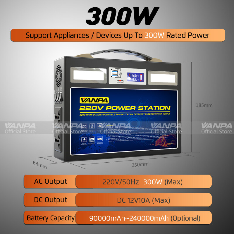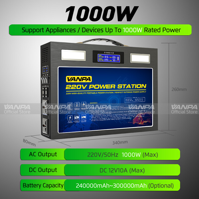 VANPA Portable Power Station 300W/600W/1000W AC 220V Output Emergency Backup Battery Solar Generator For Camping