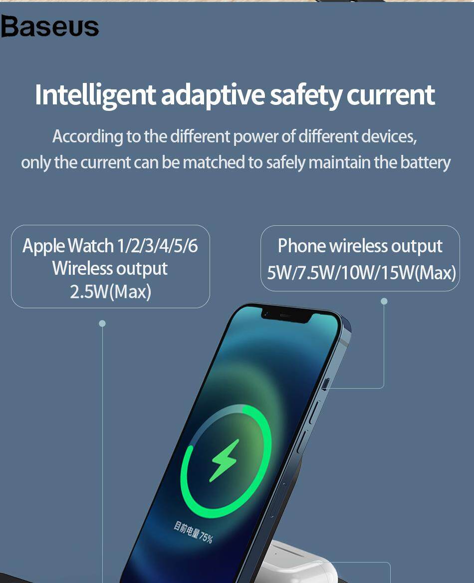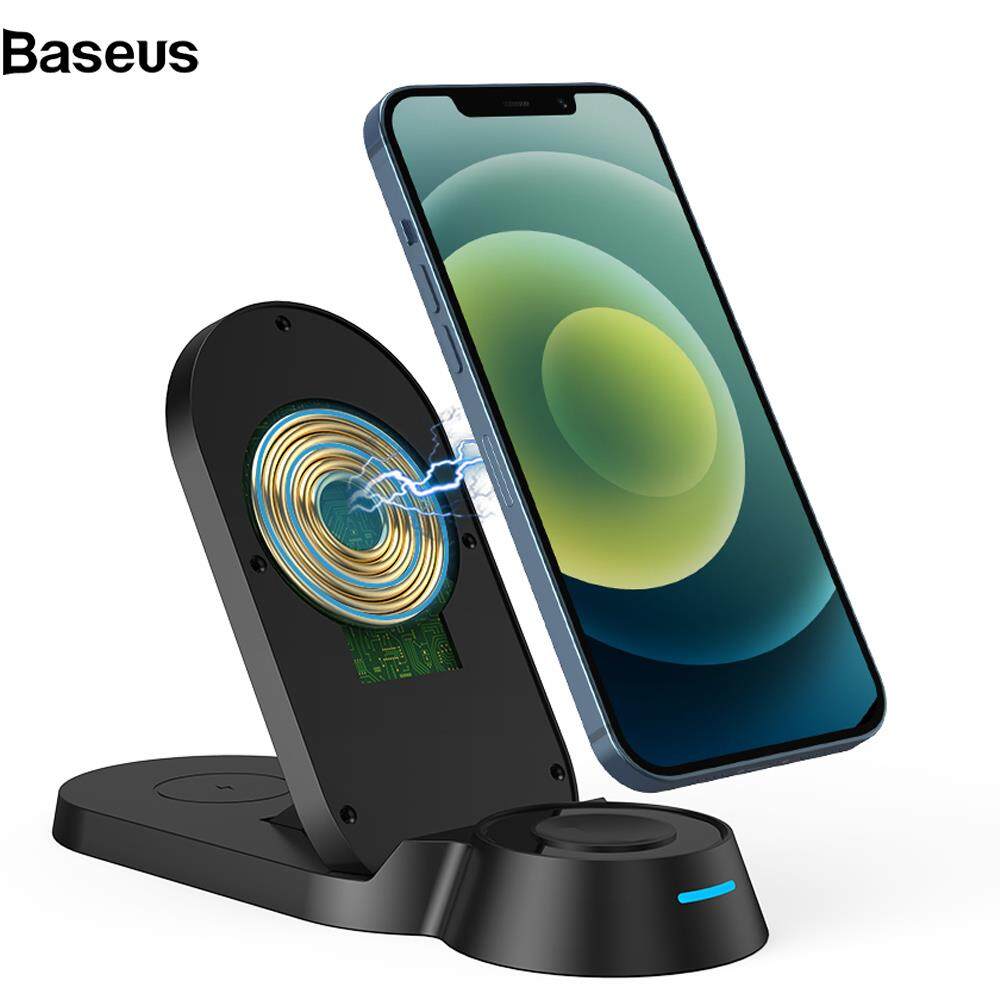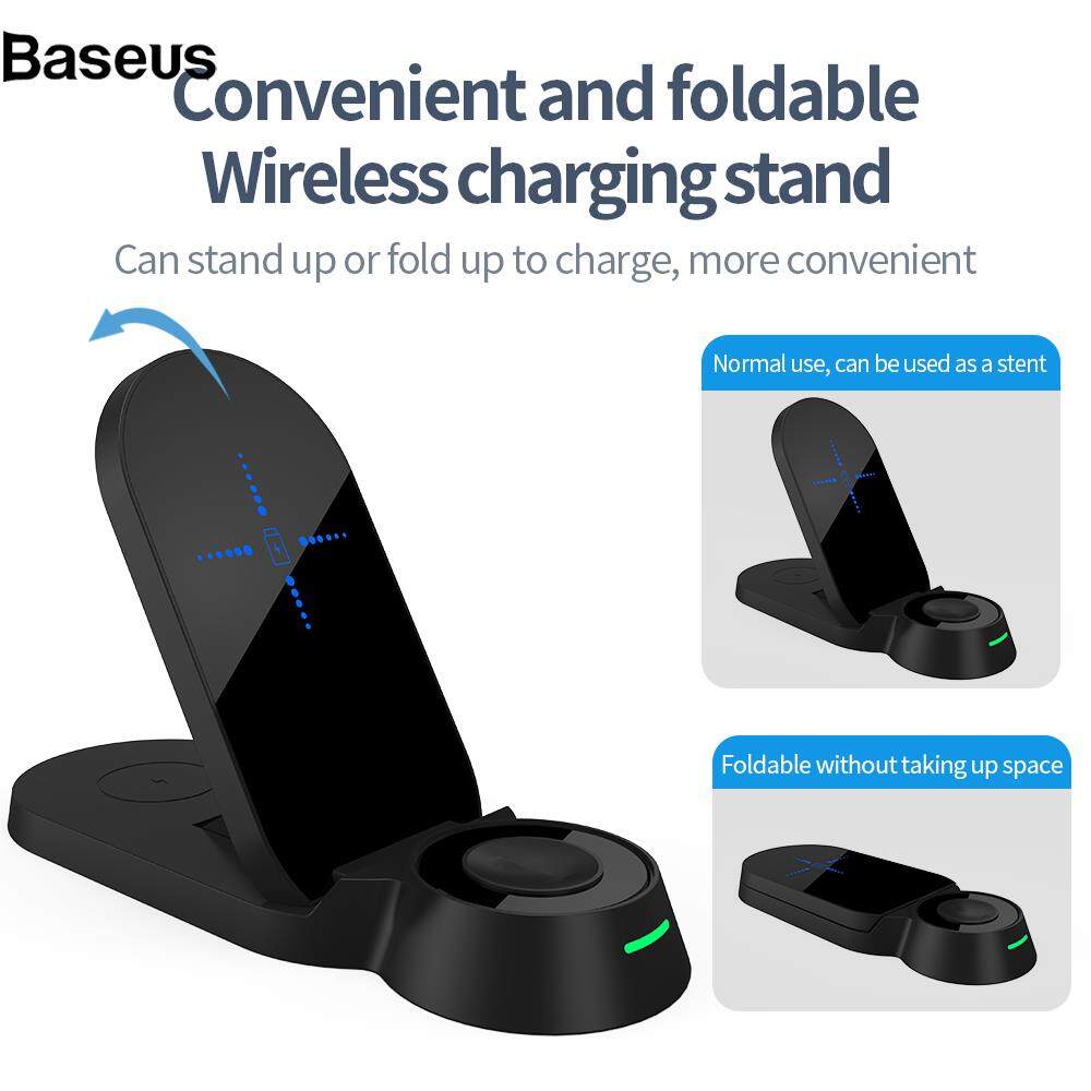 Baseus H22 Foldable 3-in-1 Wireless Charger 15W Fast Charging Stand Dock for Smartphones/Watches/Earphones